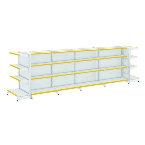 A Gôndola FIT 40 FARMA Centro é ideal para farmácia, supermercados, mercearias, lojas de utilidades, materiais de construção, agropecuárias e outros. Devido sua altura permite uma visão ampla central do comércio.