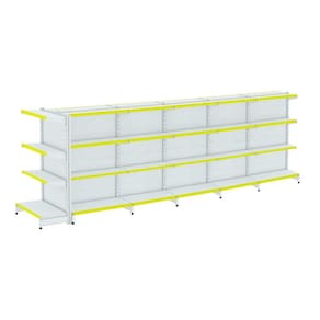 A Gôndola FIT 40 FARMA Centro é ideal para farmácia, supermercados, mercearias, lojas de utilidades, materiais de construção, agropecuárias e outros. Devido sua altura permite uma visão ampla central do comércio.