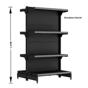 KIT GÔNDOLA CENTRO 137 FIT AMAPÁ 40/30 PRETO PARA VÃO DE ATÉ 2,40 METROS COM UMA PONTA 20 BANDEJAS PORTA ETIQUETA CINZA