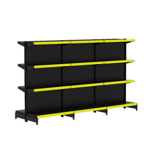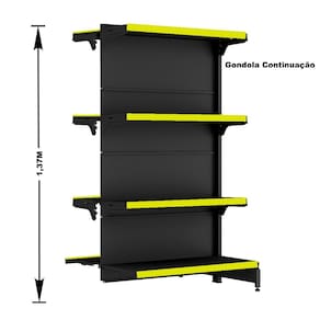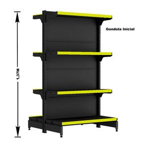 KIT GÔNDOLA CENTRO 137 FIT AMAPÁ 40/30 PRETO PARA VÃO DE ATÉ 3 METROS 24 BANDEJAS PORTA ETIQUETA AMARELO