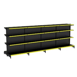 KIT GÔNDOLA CENTRO 137 FIT AMAPÁ 40/30 PRETO PARA VÃO DE ATÉ 3,90 METROS 32 BANDEJAS PORTA ETIQUETA AMARELO