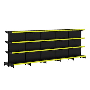 KIT GÔNDOLA CENTRO 137 FIT AMAPÁ 40/30 PRETO PARA VÃO DE ATÉ 4,90 METROS 40 BANDEJAS PORTA ETIQUETA AMARELO