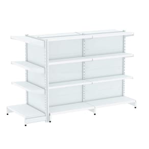 A Gôndola FIT 40 FARMA Centro é ideal para farmácia, supermercados, mercearias, lojas de utilidades, materiais de construção, agropecuárias e outros. Devido sua altura permite uma visão ampla central do comércio.