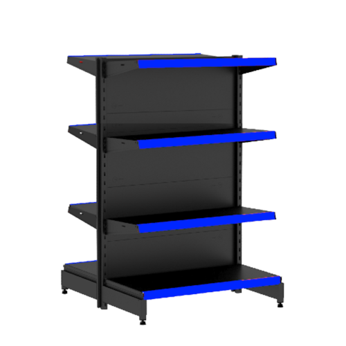 GÔNDOLA CENTRO INICIAL AMAPÁ 142 PREMIUM FLEX 40/30 COR PRETO PORTA ETIQUETA AZUL