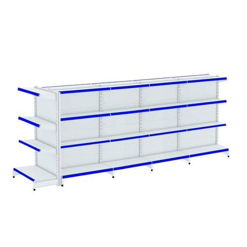 GONDOLA CENTRO 142 AMAPÁ FLEX KIT 4 METROS COM 1 PONTA 40/30 BRANCO PORTA ETIQUETA AZUL