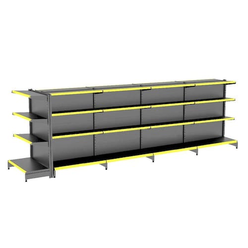 A Gôndola Premium Flex 40 Centro é ideal para farmácia, supermercados, mercearias, lojas de utilidades, materiais de construção, agropecuárias e outros. Devido sua altura permite uma visão ampla central do comércio.