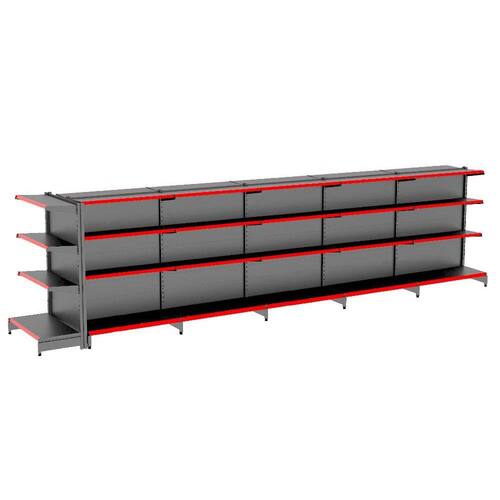 A Gôndola Premium Flex 40 Centro é ideal para farmácia, supermercados, mercearias, lojas de utilidades, materiais de construção, agropecuárias e outros. Devido sua altura permite uma visão ampla central do comércio.