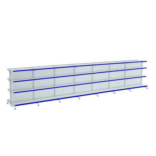 GONDOLA CENTRO 142 AMAPÁ FLEX KIT 7 METROS 40/30 BRANCO PORTA ETIQUETA AZUL