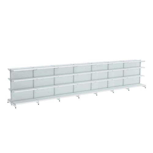 A Gôndola Premium Flex 40 Centro é ideal para farmácia, supermercados, mercearias, lojas de utilidades, materiais de construção, agropecuárias e outros. Devido sua altura permite uma visão ampla central do comércio.