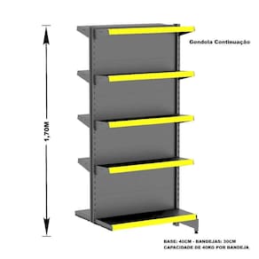 GÔNDOLA CENTRO CONTINUAÇÃO AMAPÁ 170 PREMIUM FLEX 40/30 COR PRETO PORTA ETIQUETA AMARELO