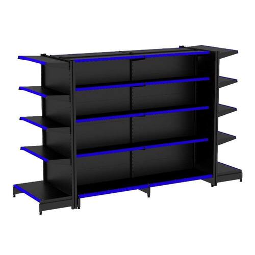 GONDOLA CENTRO 170 AMAPÁ FLEX KIT 2 METROS COM 2 PONTA 40/30 PRETO PORTA ETIQUETA AZUL