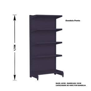 GONDOLA CENTRO 170 AMAPÁ FLEX KIT 3 METROS COM 2 PONTA 40/30 PRETO SEM PORTA ETIQUETA