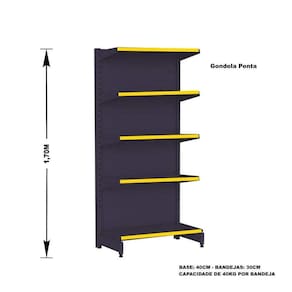 Prática e fácil de montar, com sistema de encaixe sem utilização de parafusos, possui bandejas reguláveis a cada 4,5 cm, pés com regulagem de altura, colunas dupladas e tratamento especial da superfície.