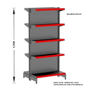 Prática e fácil de montar, com sistema de encaixe sem utilização de parafusos, possui bandejas reguláveis a cada 4,5 cm, pés com regulagem de altura, colunas dupladas e tratamento especial da superfície.