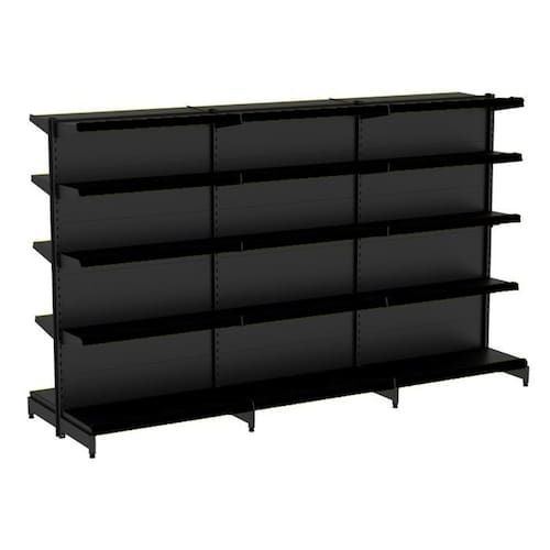 KIT GÔNDOLA CENTRO 170 FIT AMAPÁ 40/30 PRETO PARA VÃO DE ATÉ 3 METROS 30 BANDEJAS PORTA ETIQUETA PRETO