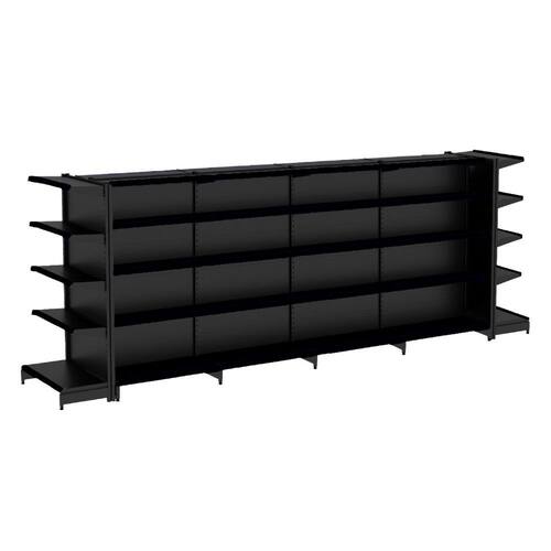 KIT GÔNDOLA CENTRO 170 FIT AMAPÁ 40/30 PRETO PARA VÃO DE ATÉ 4,70 METROS COM DUAS PONTAS 50 BANDEJAS PORTA ETIQUETA PRETO