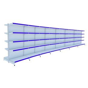 KIT GÔNDOLA CENTRO 170 FIT AMAPÁ 40/30 BRANCO PARA VÃO DE ATÉ 6,7 METROS 70 BANDEJAS PORTA ETIQUETA AZUL