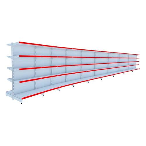 KIT GÔNDOLA CENTRO 170 FIT AMAPÁ 40/30 BRANCO PARA VÃO DE ATÉ 8,7 METROS 90 BANDEJAS PORTA ETIQUETA VERMELHO