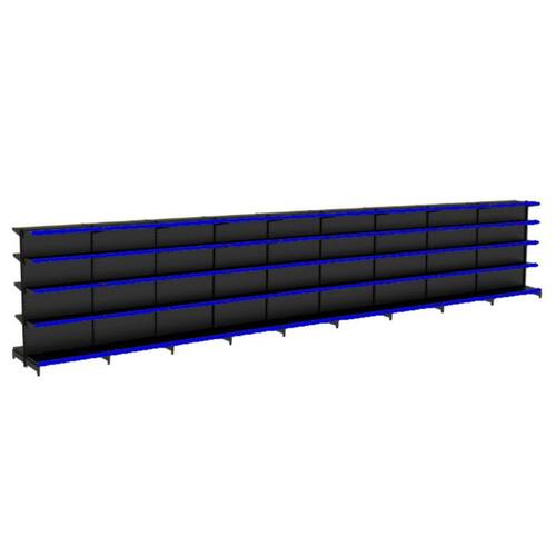 KIT GÔNDOLA CENTRO 170 FIT AMAPÁ 40/30 PRETO PARA VÃO DE ATÉ 8,7 METROS 90 BANDEJAS PORTA ETIQUETA AZUL