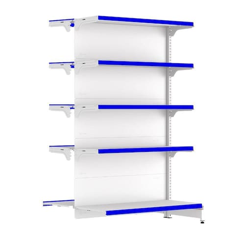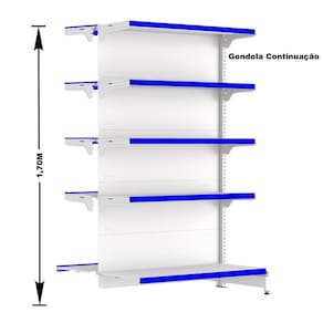GÔNDOLA CENTRO 170 FIT AMAPÁ CONTINUAÇÃO 40/30 BRANCO 10 BANDEJAS PORTA ETIQUETA AZUL