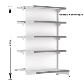 GÔNDOLA CENTRO 170 FIT AMAPÁ CONTINUAÇÃO 40/30 BRANCO 10 BANDEJAS PORTA ETIQUETA CINZA