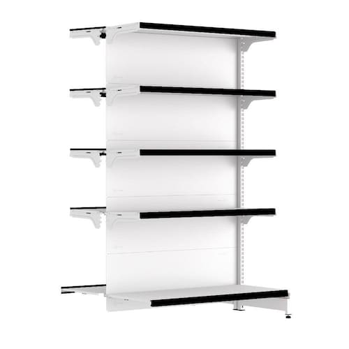 A fileira de Gôndolas deve ser iniciada com a Gôndola Inicial que possui 2 colunas. A Gôndola Continuação possui 1 coluna, utilizada para dar continuidade à fileira e não pode ser montada individualmente.
