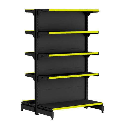 GÔNDOLA CENTRO 170 FIT AMAPÁ INICIAL 40/30 PRETO 10 BANDEJAS PORTA ETIQUETA AMARELO