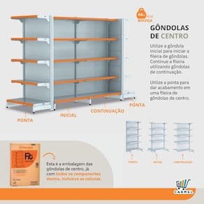 Gôndola Fit 40 é ideal para supermercados, mercearias, lojas de utilidades, materiais de construção, agropecuárias e outros.