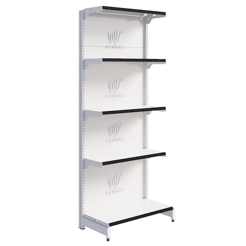 É facilmente montada por sistema de encaixe, sem uso de parafusos, inclinação da bandeja em 3 posições e fundo quadrado para melhor exposição. Possui bandejas reguláveis na coluna a cada 25mm, o que permite adição de bandejas extras. Sistema de reforço para maior capacidade de carga e estabilidade. Ponteira de coluna para proteção e durabilidade. Porta Etiquetas Smart, que não solta fácil.