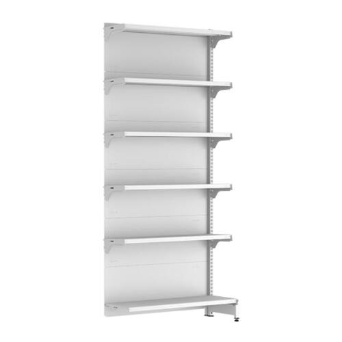 Características Técnicas: Sistema de reforço que permite maior capacidade de carga Ponteira de coluna para mais proteção e durabilidade Possui travador de parede Bandejas reguláveis na coluna a cada 25mm Capacidade por bandeja: 40kg Não acompanha porta etiquetas, sendo vendido separadamente. **