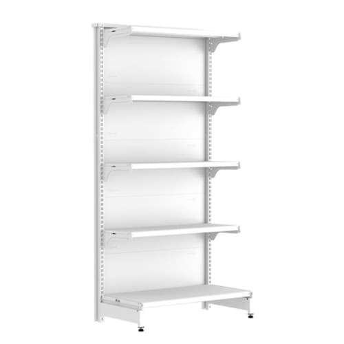 Características Técnicas: Sistema de reforço que permite maior capacidade de carga Ponteira de coluna para mais proteção e durabilidade Possui travador de parede Bandejas reguláveis na coluna a cada 25mm Capacidade por bandeja: 40kg Não acompanha porta etiquetas, sendo vendido separadamente. **