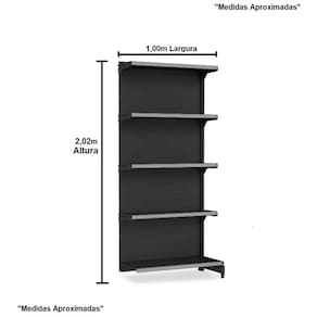 Gôndola FIT 60 Parede Preta Continuação 2,02m Altura Amapá As Gôndola FIT 60 amapá são ideais para armazenagem e exposição de seus produtos em supermercados, mercearias, farmácias, lojas de utilidades, materiais de construção, agropecuárias e muito mais. Equipamento para comerciantes de médio porte que desejem aproveitar todo o espaço da loja. Facilmente instalada na parede devido ao sistema de montagem por encaixe, sem uso de parafusos. Utilizada em supermercados, petshops, home centers, agropecuárias, lojas de construção e outros.Inclinação da bandeja em 3 posições e fundo quadrado para melhor exposição. Possui bandejas reguláveis na coluna a cada 25mm, o que permite adição de bandejas extras. Sistema de reforço que permite maior capacidade de carga. Ponteira de coluna para mais proteção e durabilidade. Possui travador de parede, item obrigatório para uma instalação com segurança. O número de bandejas varia de acordo com altura; Todos os produtos Amapá possuem qualidade, resistência e durabilidade garantidas pelo uso de matérias-primas de alto padrão, processos produtivos tecnológicos e controle de qualidade. A pintura dos produtos é feita por meio da técnica eletrostática e com tratamento anticorrosão, deixando uniforme e resistente.A fileira de Gôndolas deve ser iniciada com a Gôndola INICIAL que possui 2 colunas. A Gôndola Continuação possui 1 coluna, utilizada para dar continuidade à fileira e não pode ser montada individualmente. Dimensões Aproximadas Altura: 2,02mComprimento: 1,00m "Medidas Aproximadas"Profundidade da Bandeja da Base: 0,50mProfundidade das Bandejas Superiores: 0,40m Características Cor: PRETAComprimento da Bandeja: 0,90mQuantidade de Bandejas por Gôndola: 5Capacidade das Bandejas Superiores: 60 kgCapacidade das Bandejas Inferiores: 60 kgPorta Etiquetas Cores Disponíveis: Azul, Vermelha, Laranja, Verde, Amarela ou Cinza Contém 01 Gôndola FIT 60 Parede Preta Continuação 2,02m Altura x 1,00m Largura Amapá05 Porta Etiquetas Com Acrílico Amapá Entrega Via: TransportadoraPrazo: Consulte pelo CEP com nossos vendedores Garantia Contra Defeitos de Fabricação: 12 mesesDevolução Em até 7 dias após a chegada do produto, você tem o direito de realizar a devolução. Mas para isso, a mercadoria não deve ter sido montada, utilizada e danificada.Horário de AtendimentoSegunda a Sexta-feira, das 13:00h às 17:00h.Dúvidas, Informações, Consulte Nossos Vendedores Via WhatsApp.\nFicha Técnica\nCódigo FIT6020\nModelo Gôndola FIT 60 Parede Preta Continuação 2,02m Altura x 1,00m Largura Amapá\nCategoria Gôndolas FIT 60\nMarca Amapá Metalúrgica\nItens Inclusos - 01 Gôndola FIT 60 Parede Preta Continuação 2,02m Altura x 1,00m Largura Amapá- 05 Porta Etiquetas Com Acrílico Amapá\nGarantia 1 ano após o recebimento do produto\nDisponibilidade Disponível em 30 dias úteis
