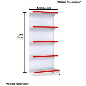 Gôndola FIT 60 Parede Inicial 1,70m Altura x 1,00m Largura - Amapá As Gôndola FIT 60 amapá são ideais para armazenagem e exposição de seus produtos em supermercados, mercearias, farmácias, lojas de utilidades, materiais de construção, agropecuárias e muito mais. Equipamento para comerciantes de médio porte que desejem aproveitar todo o espaço da loja. Facilmente instalada na parede devido ao sistema de montagem por encaixe, sem uso de parafusos. Utilizada em supermercados, petshops, home centers, agropecuárias, lojas de construção e outros.Inclinação da bandeja em 3 posições e fundo quadrado para melhor exposição. Possui bandejas reguláveis na coluna a cada 25mm, o que permite adição de bandejas extras. Sistema de reforço que permite maior capacidade de carga. Ponteira de coluna para mais proteção e durabilidade. Possui travador de parede, item obrigatório para uma instalação com segurança. O número de bandejas varia de acordo com altura; Todos os produtos Amapá possuem qualidade, resistência e durabilidade garantidas pelo uso de matérias-primas de alto padrão, processos produtivos tecnológicos e controle de qualidade. A pintura dos produtos é feita por meio da técnica eletrostática e com tratamento anticorrosão, deixando uniforme e resistente.A fileira de Gôndolas deve ser iniciada com a Gôndola Inicial que possui 2 colunas. A Gôndola Continuação possui 1 coluna, utilizada para dar continuidade à fileira e não pode ser montada individualmente. Dimensões Aproximadas Altura: 1,70mComprimento: 1,00m "Medidas Aproximadas"Profundidade da Bandeja da Base: 0,50mProfundidade das Bandejas Superiores: 0,40m Características Cor: BrancaComprimento da Bandeja: 0,90mQuantidade de Bandejas por Gôndola: 5Capacidade das Bandejas Superiores: 60 kgCapacidade das Bandejas Inferiores: 60 kgPorta Etiquetas Cores Disponíveis: Azul, Vermelha, Laranja, Verde ou Amarela. Contém - 01 Gôndola FIT 60 Parede Inicial 1,70m Altura x 1,00m Largura Amapá - 05 Porta Etiquetas Entrega Via: TransportadoraPrazo: Consulte pelo CEP Garantia Contra Defeitos de Fabricação: 12 mesesDevolução Em até 7 dias após a chegada do produto, você tem o direito de realizar a devolução. Mas para isso, a mercadoria não deve ter sido montada, utilizada e danificada.Horário de AtendimentoSegunda a Sexta-feira, das 13:00h às 17:00h.Dúvidas, Informações, consulte nossos Vendedores via WhatsApp.\nFicha Técnica\nCódigo AMP0473\nModelo Gôndola FIT 60 PAREDE INICIAL 1,70m Altura x 1,00m Largura - Amapá\nCategoria Gôndolas FIT 60\nMarca Amapá Metalúrgica\nItens Inclusos 1 Gôndola FIT 60 Parede Inicial 1,70m Altura x 1,00m Largura - Amapá\nGarantia 1 ano após o recebimento do produto\nDisponibilidade Disponível em 30 dias úteis