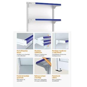 Gôndola FIT 60 Ponta 2,02m Altura x 1,00m Comprimento AmapáO objetivo desta Gôndola é tornar a loja mais atraente, destacar produtos de grande procura e gerar mais lucratividade. Ideal para lojas de médio porte, é utilizada no início e no final das fileiras de gôndolas centrais. Indicada para supermercados, petshops, home centers, agropecuárias, lojas de construção e outros negócios.É facilmente montada por sistema de encaixe, sem uso de parafusos. Inclinação da bandeja em 3 posições e fundo quadrado para melhor exposição. Possui bandejas reguláveis na coluna a cada 25mm, o que permite adição de bandejas extras. Sistema de reforço para maior capacidade de carga e estabilidade. Ponteira de coluna para proteção e durabilidade. Porta Etiquetas Smart, que não solta fácil, e diversos outros acessórios disponíveis. O número de bandejas varia de acordo com altura. Dimensões Aproximadas Altura: 2,02mProfundidade da Bandeja da Base: 50cmProfundidade das Bandejas Superiores: 40cmComprimento: 1,00m "medidas aproximadas" Características Cor: BrancaComprimento da Bandeja: 0,90mQuantidade de Bandejas por Gôndola: 5Capacidade das Bandejas Superiores: 40 kgCapacidade das Bandejas Inferiores: 60 kgPorta Etiquetas Cores Disponíveis: Azul, Vermelha, Amarela, Verde ou Laranja. Contém 01 Gôndola FIT 60 PONTA 2,02m Branca - Amapá05 Porta Etiquetas Com Acrílico Amapá Entrega Via: TransportadoraPrazo: Consulte pelo CEP com nossos Vendedores Garantia Contra Defeitos de Fabricação: 12 Meses Devolução Em até 7 dias após a chegada do produto, você tem o direito de realizar a devolução. Mas para isso, a mercadoria não deve ter sido montada, utilizada e danificada.Horário de AtendimentoSegunda a Sexta-feira, das 13:00h às 17:00h.Dúvidas, Informações, consulte nossos Vendedores via WhatsApp. \nFicha Técnica\nCódigo FIT6015\nModelo Linha Gôndolas FIT 60 Amapá\nCategoria Gôndola PONTA\nMarca Amapá Metalúrgica\nItens Inclusos 01 Gôndola FIT 60 PONTA 2,02m Branca - Amapá05 Porta Etiquetas Com Acrílico Amapá\nGarantia 1 ano após o recebimento do produto\nDisponibilidade Disponível em 30 dias úteis