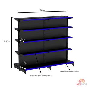 Gôndola FIT Centro 1,70m Altura x 2,00m Comprimento 1 Inicial 1 ContinuaçãoAs Gôndola FIT 40 amapá são ideais para armazenagem e exposição de seus produtos em supermercados, mercearias, farmácias, lojas de utilidades, materiais de construção, agropecuárias e muito mais. Equipamento para comerciantes de pequeno e médio porte que desejem aproveitar todo o espaço da loja. Facilmente instalada na parede devido ao sistema de montagem por encaixe, sem uso de parafusos. Utilizada em mercados, mercearias, farmácias, papelarias, supermercados, petshops, home centers, agropecuárias, lojas de construção, lojas de utilidades e outros negócios.Inclinação da Bandeja em 3 posições e fundo quadrado para melhor exposição. Possui bandejas reguláveis na coluna a cada 25mm, o que permite adição de bandejas extras. Sistema de reforço que permite maior capacidade de carga. Ponteira de coluna para mais proteção e durabilidade. Possui travador de parede, item obrigatório para uma instalação com segurança. O número de bandejas varia de acordo com altura; Todos os produtos Amapá possuem qualidade, resistência e durabilidade garantidas pelo uso de matérias-primas de alto padrão, processos produtivos tecnológicos e controle de qualidade. A pintura dos produtos é feita por meio da técnica eletrostática e com tratamento anticorrosão, deixando uniforme e resistente. Dimensões Aproximadas Altura: 1,70mComprimento Total: 2,00m " Medida Aproximada "Profundidade das Bandeja da Base: 0,40cmProfundidade das Bandeja da Base Total: 0,80cmProfundidade das Bandejas Superiores: 0,30cmProfundidade das Bandejas Superiores Total: 0,60cmCaracterísticas Cor: PRETAComprimento da Bandeja: 0,90cmQuantidade de Bandejas por Gôndola: 10Quantidade de Bandejas Total: 20Capacidade das Bandejas Superiores: 40kgCapacidade das Bandejas Inferiores: 60kgPorta Etiquetas Corés Diponíveis: Azul, Vermelha, Verde e Amarelo Contém 01 Gôndola FIT 1,70m Preta Centro Inicial 80/60 – Amapá 01 Gôndola FIT 1,70m Preta Centro Continuação 80/60 – Amapá.20 Porta Etiquetas Com Acrilico - Amapá Entrega Via: TransportadoraPrazo: Consulte pelo CEP com nossos vendedoresGarantia Contra Defeitos de Fabricação: 12 meses. Dúvidas, Informações, Consulte Nossos Vendedores Via WhatsApp.\nFicha Técnica\nCódigo 435\nModelo Linha Gôndolas FIT 40 Amapá\nCategoria GÔNDOLAS AMAPÁ\nMarca Amapá Metalúrgica\nItens Inclusos 01 Gôndola FIT 1,70m Preta Centro Inicial 80/60 Amapá01 Gôndola FIT 1,70m Preta Centro Continuação 80/60 Amapá.20 Porta Etiquetas Com Acrilico - Amapá\nGarantia 1 ano após o recebimento do produto\nDisponibilidade Disponível em 30 dias úteis