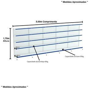 Gôndola FIT Parede PRETA 1,70m Altura x 5,00m Comprimento – Amapá As Gôndolas FIT 40 Amapá são ideais para armazenagem e exposição de seus produtos em supermercados, mercearias, farmácias, lojas de utilidades, materiais de construção, agropecuárias e muito mais. Equipamento para comerciantes de pequeno e médio porte que desejem aproveitar todo o espaço da loja. Facilmente instalada na parede devido ao sistema de montagem por encaixe, sem uso de parafusos. Utilizada em mercados, mercearias, farmácias, papelarias, supermercados, petshops, home centers, agropecuárias, lojas de construção, lojas de utilidades e outros negócios.Inclinação da bandeja em 3 posições e fundo quadrado para melhor exposição. Possui bandejas reguláveis na coluna a cada 25mm, o que permite adição de bandejas extras. Sistema de reforço que permite maior capacidade de carga. Ponteira de coluna para mais proteção e durabilidade. Possui travador de parede, item obrigatório para uma instalação com segurança. O número de bandejas varia de acordo com altura; Todos os produtos Amapá possuem qualidade, resistência e durabilidade garantidas pelo uso de matérias-primas de alto padrão, processos produtivos tecnológicos e controle de qualidade. A pintura dos produtos é feita por meio da técnica eletrostática e com tratamento anticorrosão, deixando uniforme e resistente. Dimensões Aproximadas Altura: 1,70mComprimento da Bandeja: 90cmProfundidade da Bandeja da Base: 0,40mProfundidade das Bandejas Superiores: 0,30mComprimento Total Montada: 5,00m " Medida Aproximada " Características Cor: PretaMarca: AmapáQuantidade de Bandejas Total: 25Quantidade de Bandejas por Gôndola: 05Capacidade das Bandejas Inferiores: 40kgCapacidade das Bandejas Superiores: 40kgFornecedor: Mixmob Instalações Comerciais Linha de Gôndolas FIT com Inclinação das Bandejas em até 3 posições. Porta Etiquetas Cores Diponíveis: Azul, Amarelo, Verde, Vermelha e Laranja. Contém 25 Porta Etiquetas Com Acrilico - Amapá 01 Gôndolas FIT 1,70m Preta Parede Inicial 40/30 – Amapá 04 Gôndolas FIT 1,70m Preta Parede Continuação 40/30 – Amapá. Entrega Via: TransportadoraPrazo: Consulte pelo CEP com nossos vendedoresGarantia Contra Defeitos de Fabricação: 12 meses DevoluçãoEm até 7 dias após a chegada do produto, você tem o direito de realizar a devolução. Mas para isso, a mercadoria não deve ter sido montada, utilizada e danificada.Horário de AtendimentoSegunda a Sexta-feira, das 13:00h às 17:00h.Dúvidas, Informações, Consulte Nossos Vendedores Via WhatsApp.\nFicha Técnica\nCódigo 1607\nModelo Linha Gôndolas FIT 40 Amapá\nCategoria Gôndolas FIT 40 Parede\nMarca Amapá Metalúrgica\nItens Inclusos 25 Porta Etiquetas FIT Com Acrílico - Amapá01 Gôndola FIT 1,70m Preta Parede Inicial 40/30 Amapá04 Gôndolas FIT 1,70m Preta Parede Continuação 40/30 Amapá.\nGarantia 1 ano após o recebimento do produto\nDisponibilidade Disponível em 30 dias úteis\nInformação adicional Dúvidas, Informações, Consulte Nossos Vendedores Via WhatsApp.