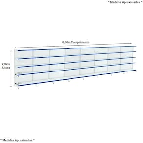 Gôndola FIT Parede 2,02m Altura x 8,00m Comprimento 1 Inicial 7 Continuações - AmapáAs Gôndolas FIT Amapá são ideais para armazenagem e exposição de seus produtos em supermercados, mercearias, farmácias, lojas de utilidades, materiais de construção, agropecuárias e muito mais. Equipamento para comerciantes de pequeno e médio porte que desejem aproveitar todo o espaço da loja. Facilmente instalada na parede devido ao sistema de montagem por encaixe, sem uso de parafusos. Utilizada em mercados, mercearias, farmácias, papelarias, supermercados, petshops, home centers, agropecuárias, lojas de construção, lojas de utilidades e outros negócios.Inclinação da bandeja em 3 posições e fundo quadrado para melhor exposição. Possui bandejas reguláveis na coluna a cada 25mm, o que permite adição de bandejas extras. Sistema de reforço que permite maior capacidade de carga. Ponteira de coluna para mais proteção e durabilidade. Possui travador de parede, item obrigatório para uma instalação com segurança. O número de bandejas varia de acordo com altura; Todos os produtos Amapá possuem qualidade, resistência e durabilidade garantidas pelo uso de matérias-primas de alto padrão, processos produtivos tecnológicos e controle de qualidade. A pintura dos produtos é feita por meio da técnica eletrostática e com tratamento anticorrosão, deixando uniforme e resistente. Dimensões Aproximadas Altura: 2,02mComprimento da Bandeja: 0,90mProfundidade da Bandeja da Base: 0,40mProfundidade das Bandejas Superiores: 0,30mComprimento Total Montada: 8,00m " Medida Aproximada" Características Cor: BRANCAQuantidade de Bandejas por Gôndola: 5Quantidade de Bandejas Total: 40Capacidade das Bandejas Superiores: 40 kgCapacidade das Bandejas Inferiores: 60 kgPorta Etiquetas Cor: Azul, Vermelha ou Amarela. Contém 40 Porta Etiquetas Com Acrilico - Amapá 01 Gôndola FIT Parede 2,02m Branca Inicial 40/30 – Amapá 07 Gôndolas FIT Parede 2,02m Branca Continuação 40/30 – Amapá. Entrega Via: TransportadoraPrazo: Consulte pelo CEP com nossos vendedores Garantia Contra Defeitos de Fabricação: 12 mesesDevolução Em até 7 dias após a chegada do produto, você tem o direito de realizar a devolução. Mas para isso, a mercadoria não deve ter sido montada, utilizada e danificada.Horário de AtendimentoSegunda a Sexta-feira, das 13:00h às 17:00h.Dúvidas, Informações, Consulte Nossos Vendedores Via WhatsApp.\nFicha Técnica\nCódigo 1343\nModelo Linha Gôndolas FIT Amapá\nCategoria Gôndolas FIT 40 Parede\nMarca Amapá Metalúrgica\nItens Inclusos 40 Porta Etiquetas Com Acrilico - Amapá01 Gôndola FIT Parede 2,02m Branca Inicial 40/30 Amapá07 Gôndolas FIT Parede 2,02m Branca Continuação 40/30 Amapá.\nGarantia 1 ano após o recebimento do produto\nDisponibilidade Disponível em 3 dias úteis\nInformação adicional Dúvidas, Informações, Consulte Nossos Vendedores Via WhatsApp.