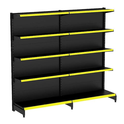 GONDOLA PAREDE 170 AMAPÁ FLEX KIT 2 METROS 40/30 PRETO PORTA ETIQUETA AMARELO