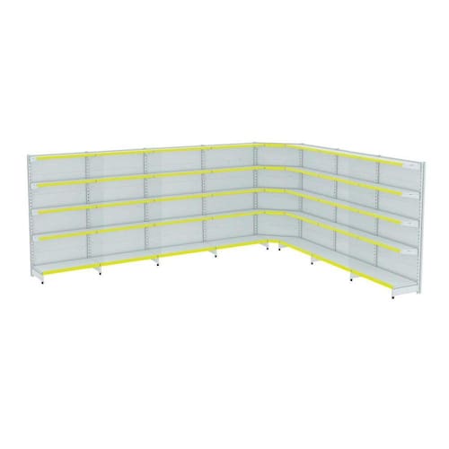 A Gôndola Premium Flex 40 Parede é ideal para supermercados, mercearias, lojas de utilidades, materiais de construção, agropecuárias e outros. Prática e fácil de montar, com sistema de encaixe sem utilização de parafusos, possui bandejas reguláveis a cada 4,5cm, pés com regulagem de altura, colunas dupladas e tratamento especial da superfície.
