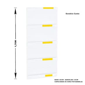 A bandeja base com profundidade de 40 cm e as demais 30 cm