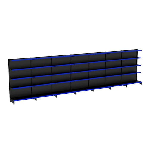 A Gôndola Premium Flex 40 Parede é ideal para supermercados, mercearias, lojas de utilidades, materiais de construção, agropecuárias e outros. Prática e fácil de montar, com sistema de encaixe sem utilização de parafusos, possui bandejas reguláveis a cada 4,5cm, pés com regulagem de altura, colunas dupladas e tratamento especial da superfície.