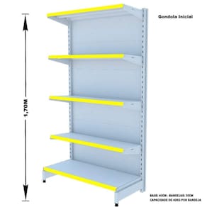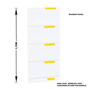 A Gôndola Premium Flex 40 Parede é ideal para supermercados, mercearias, lojas de utilidades, materiais de construção, agropecuárias e outros. Prática e fácil de montar, com sistema de encaixe sem utilização de parafusos, possui bandejas reguláveis a cada 4,5cm, pés com regulagem de altura, colunas dupladas e tratamento especial da superfície.