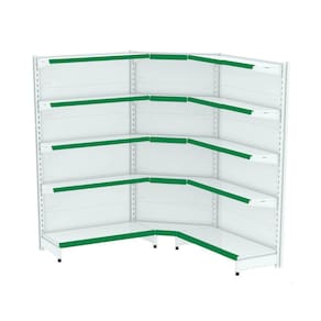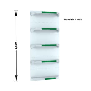 GONDOLA PAREDE 170 FIT AMAPÁ PARA VÃO DE ATÉ 2 METROS MAIS UM CANTO 40/30 BRANCO 15 BANDEJAS PORTA ETIQUETA VERDE