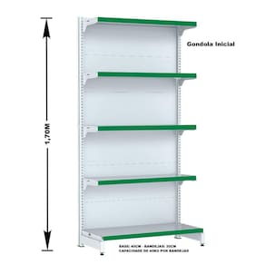 A fileira de Gôndolas deve ser iniciada com a Gôndola Inicial que possui 2 colunas. A Gôndola Continuação possui 1 coluna, utilizada para dar continuidade à fileira e não pode ser montada individualmente.