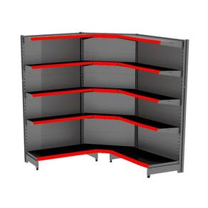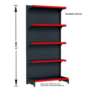 GONDOLA PAREDE 170 FIT AMAPÁ PARA VÃO DE ATÉ 2 METROS MAIS UM CANTO 40/30 PRETO 15 BANDEJAS PORTA ETIQUETA VERMELHO