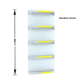 GONDOLA PAREDE 170 FIT AMAPÁ PARA VÃO DE ATÉ 3 METROS MAIS UM CANTO 40/30 BRANCO 20 BANDEJAS PORTA ETIQUETA AMARELO