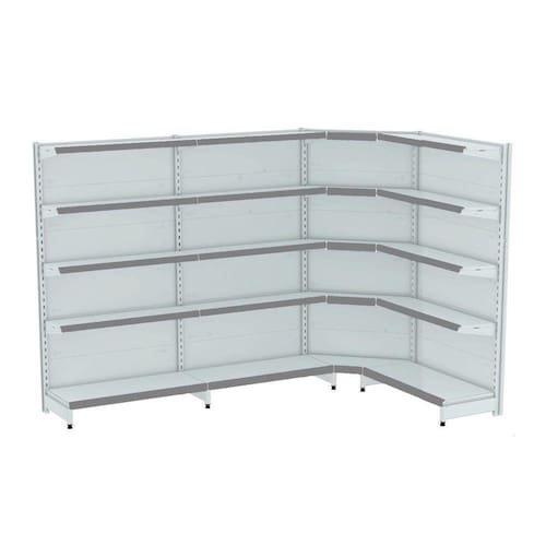 GONDOLA PAREDE 170 FIT AMAPÁ PARA VÃO DE ATÉ 3 METROS MAIS UM CANTO 40/30 BRANCO 20 BANDEJAS PORTA ETIQUETA CINZA