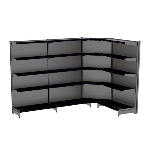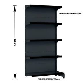 GONDOLA PAREDE 170 FIT AMAPÁ PARA VÃO DE ATÉ 3 METROS MAIS UM CANTO 40/30 PRETO 20 BANDEJAS PORTA ETIQUETA PRETO