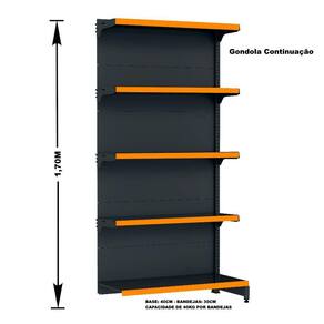 GÔNDOLA PAREDE 170 FIT AMAPÁ PARA VÃO DE ATÉ 3 METROS 40/30 BRANCO 15 BANDEJAS PORTA ETIQUETA LARANJA