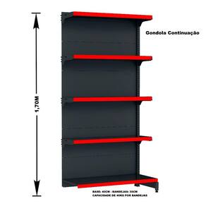 GÔNDOLA PAREDE 170 FIT AMAPÁ PARA VÃO DE ATÉ 3 METROS 40/30 BRANCO 15 BANDEJAS PORTA ETIQUETA VERMELHO